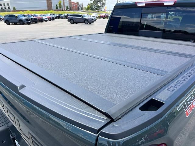 Convenience Package II: Premium Bose 7-Speaker Sound System; Power Sliding Rear Window with Rear Defogger; In-Vehicle Trailering System App; Universal Home Remote; Hitch Guidance with Hitch View. Leather Package: Leather-Appointed Front Seat Trim; Up-Level Rear Seat with Storage Package. LT Trail Boss Premium Package: Power Tailgate. Safety Package: HD Surround Vision; Rear Cross Traffic Braking; Trailer Side Blind Zone Alert; Rear Pedestrian Alert; Ultrasonic Front and Rear Park Assist; Perimeter Lighting; Trailer Camera Provisions. Preferred Equipment Group 2LT: HD Rear Vision Camera; 20" X 9" High Gloss Black Painted Aluminum Wheels; Rear 60/40 Folding Bench Seat (folds Up); SiriusXM with 360L Trial Subscription; Bluetooth® For Phone; Trailering Package; Standard Tailgate; Front LED Fog Lamps; Tire Pressure Monitoring System; Suspension Package; Steering Wheel Audio Controls; Teen Driver; Color-Keyed Carpeting Floor Covering; OnStar Services Capable; Power Front Windows with Passenger Express Down; Inside Rearview Mirror with Tilt; 2-Speed Electronic Autotrac Transfer Case; Deep-Tinted Glass; 12.3" Multicolor Reconfigurable Digital Display; 6-Speaker Audio System; All-Weather Floor Liner; High Gloss Black Mirror Caps; Electronic Cruise Control; Power Rear Windows with Express Down; Chevy Safety Assist; Performance Red Recovery Hooks; Integrated Trailer Brake Controller; Power Front Windows with Driver Express Up/down; EZ Lift Power Lock and Release Tailgate; 275/60R20SL AT BW Tires; Convenience Package; Auto-Locking Rear Differential; Heated Power-Adjustable Outside Mirrors. Protection Package: Rear Wheelhouse Liners; Chevytec Spray-On Black Bedliner. Hard Folding Truck Bed Cover. Front